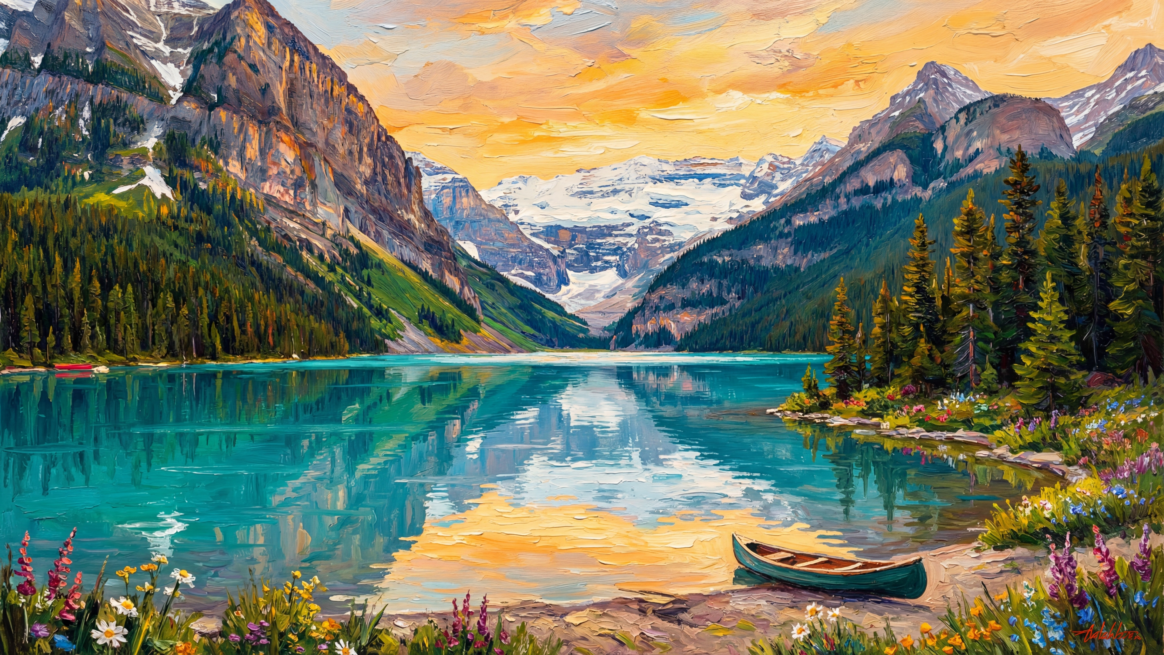 "Make a beautiful nature scene with a river and a mountain similar to Lake Luis "